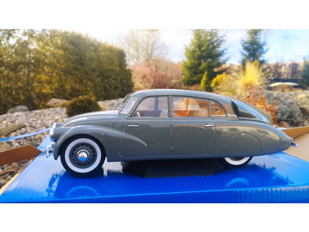 TATRA 87 z roku 1937 v šedé barvě .